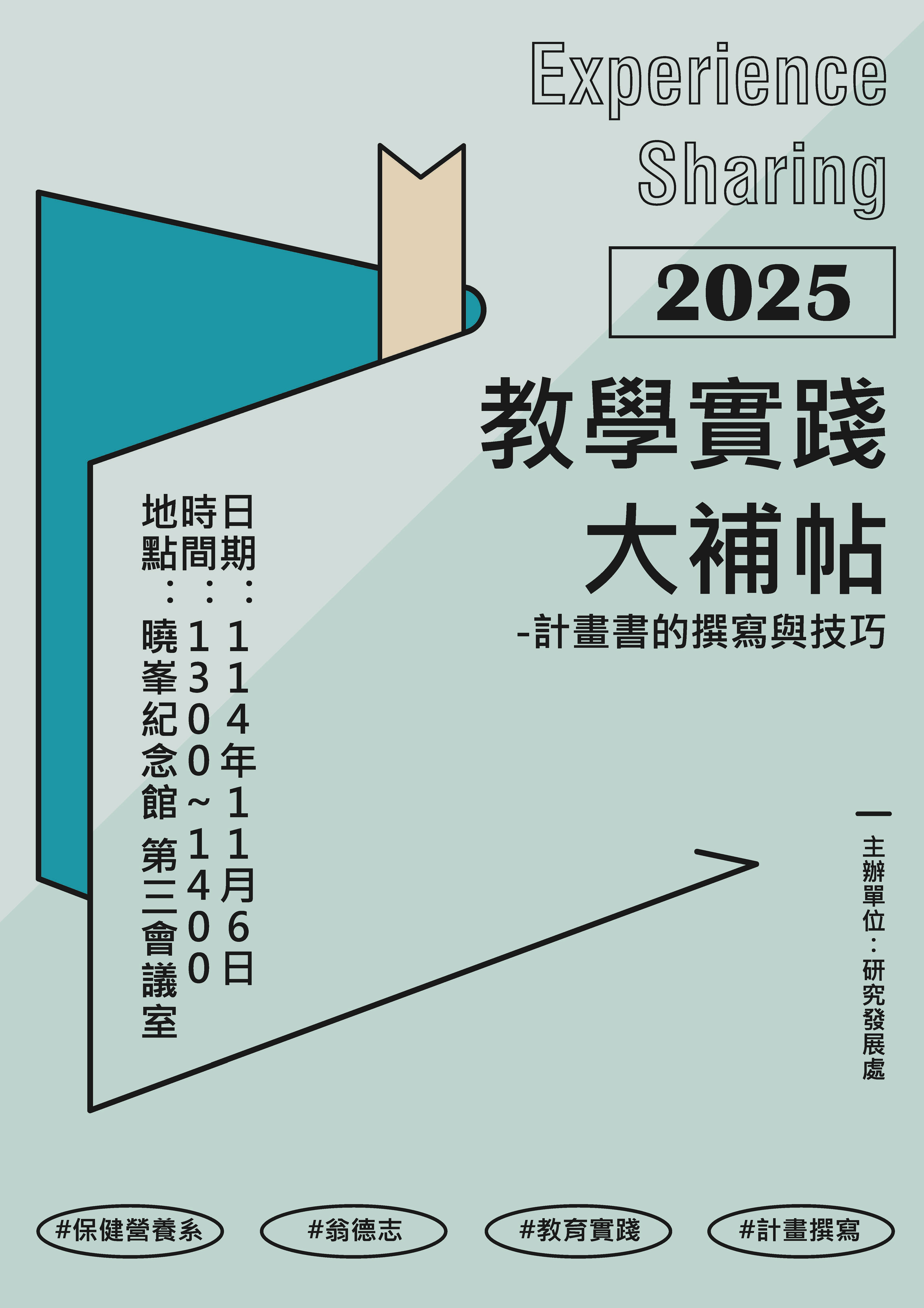 本中心將於114年11月6日辦理經驗分享會,可公開簡報將放置計畫經驗及成果分享會專區,歡迎師長提前準備計畫撰寫並踴躍申請!
